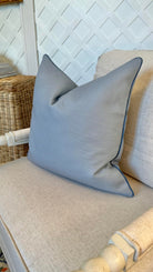 Bring a touch of classic charm to any space with our Chesapeake pillow cover in 20” x 20". The Grandmillennial-inspired design adds just the right dose of timeless style—whether it’s on your bed, your favorite chair, the nursery rocker, or a cozy corner of your living room. This soft blue grey pillow is close to Pantone Celestial Blue.