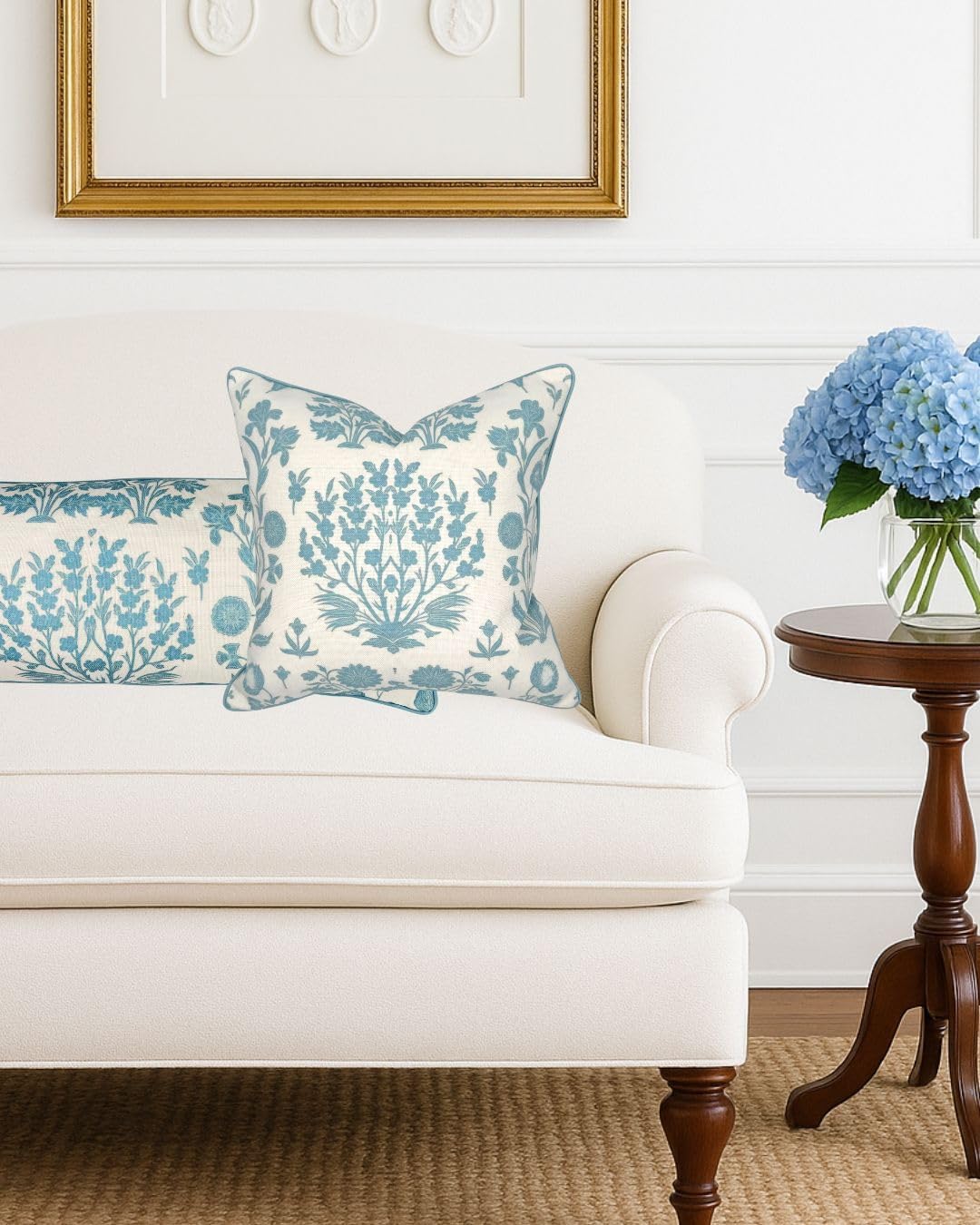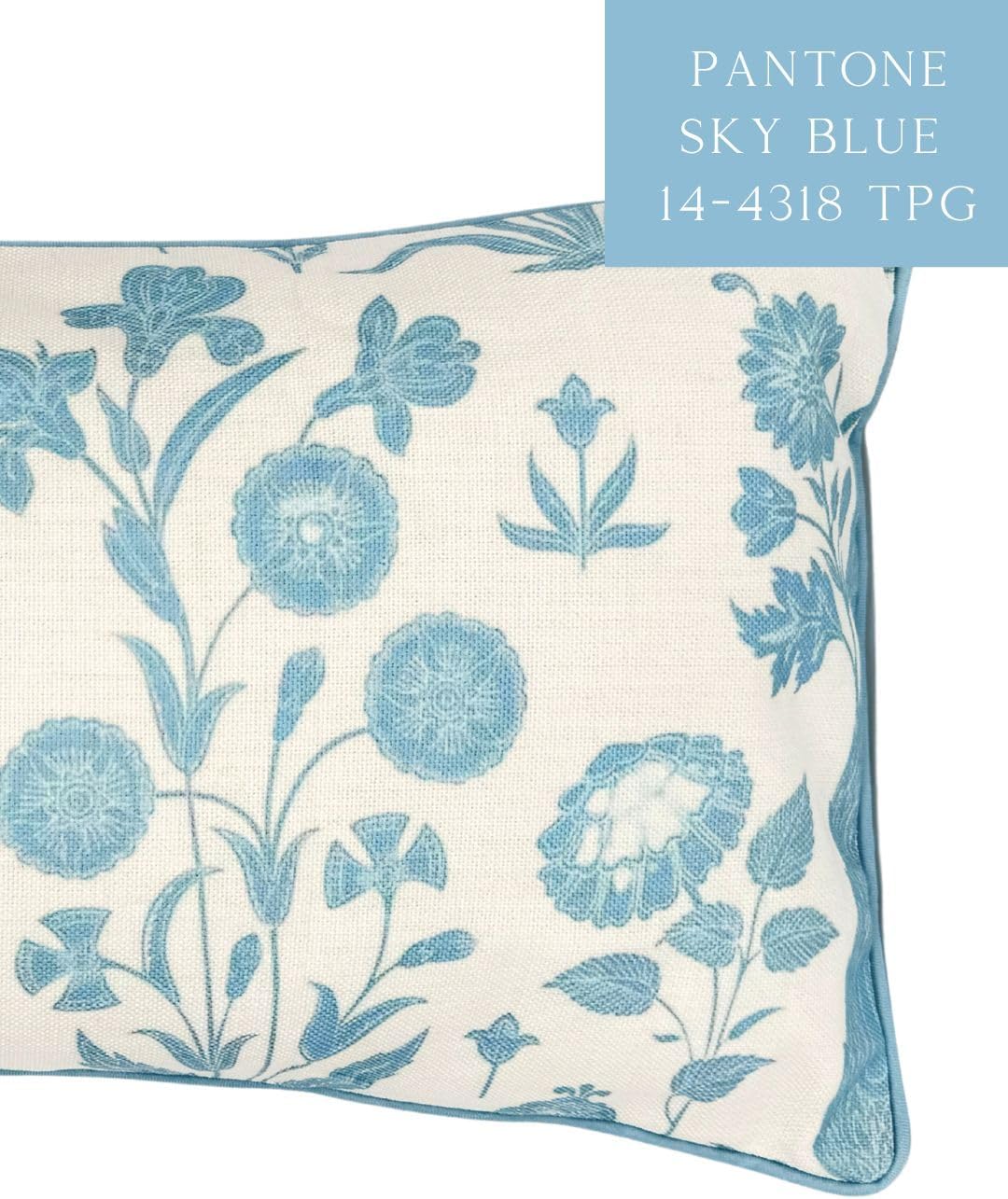 Designed with a bright sky blue floral print (similar to Hex #8DBCD4 / Pantone 14-4318 Sky Blue) on an off-white background. The soft yet vibrant blue adds a fresh, elegant touch to any space. Please see product images and adjust your screen brightness to confirm color accuracy before purchasing.