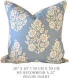 Hazel by Jillien Harbor Block Print Floral Pillow Cover Blue and White Grandmillennial Pillow Cover 20"x20"