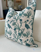 Bring a touch of coastal elegance to your home with our Charleston pillow—a fresh take on Grandmillennial design with a breezy, classic feel. This 20"x20" pillow cover features a timeless chinoiserie-inspired pattern and is finished with subtle light grey piping with a hint of blue, adding a tailored look to any space from your living room to a nursery or office.