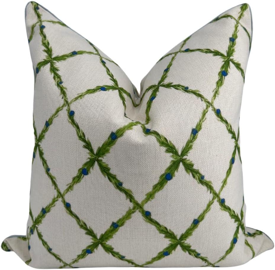 Meet the Lattice pillow—our elevated garden-inspired design that blends Grandmillennial charm with designer-level detail. This 20"x20" pillow cover adds a classic, refined look to any space, whether styled on a bed, sofa, or reading chair. The double-sided print makes it especially versatile, and it pairs beautifully with scalloped pillows or other Grandmillennial décor elements.